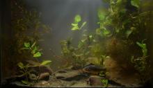 Аквариум: для рыб подойдет аквариум от 100-150 литров. На дно насыпают мелкий песок серого или желтого цвета. Из декораций подойдут ветвистые коряги. Растениями засаживают 60% от площади дна. Не помешают и плавающие на поверхности растения, типа водокраса. Молодых ротанов можно содержать группой, но следует понимать, что доминирующее количество самцов может привести к постоянным потасовкам (особенно в небольших емкостях), вплоть до выбивания глаз. Парное содержание тоже не совсем удачно. Вечно готовый к спариванию самец не дает прохода самке. Соседями могут быть караси, вьюны, лини и карпы. Едят ротаны любой живой корм и пищу животного происхождения – кусочки рыбы, мяса, креветки. Очень прожорливы. Поэтому кормят рыб не чаще одного раза в день, устраивая на недели 1-2 разгрузочных дня. При содержание ротанов можно обходится без технических средств, но маленький внутренний фильтр не помешает, так как он будет препятствовать образованию застойных зон в аквариуме. Температура содержания 15-25 С, pH 6,5-7,5, dH 2-15.