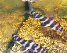 Тело удлиненное с небольшой головой и вытянутым рылом. Самцы стройнее самок. Окраска: общий фон желтый с шестью черными полосами. Еще одна полоса проходит через глаз и у основания хвостового плавника. Размеры неизвестны