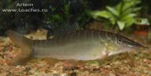 Тело удлиненное, сплющенное с боков. Рыло вытянутое. Под глазами по одному острому, складному шипику. В спинном плавнике 12 лучей, в анальном - 8. Окраска: тело беловатое с желтизной. Вдоль спины и боковой линии тянутся широкие черные полосы. Самцы стройнее. Рыло у них более вытянутое и губы толще. Вырастают до 8 см. Недавно внесен в новый род Ambastaia.