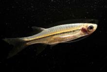 Тело удлиненное, сильно сплющенное с боков. Имеет две пары усиков. Верхние челюстная пара очень длинные и почти достают анального плавника. Грудные плавники очень большие. Рыбы часто расправляют их, подобно крыльям, приподняв вверх. Половые различия затруднительны. По общему мнению самки полнее и крупнее самцов. Окраска: спина темно-оливковая, бока золотистые. Вдоль тела проходит черная полоса, которая, в зависимости от самочувствия рыбки может сильно светлеть. Вырастает до 13 см.