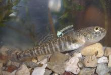 Тело сильно вытянутое и сжатое с боков. Голова тоже сплющена и с острым рылом. Второй спинной плавник с 8-10 лучами, анальный с 8-9. Половые отличия: у самцов на спинных плавниках темные продольные полосы, которые отсутствуют у самок: Окраска: тело светло-коричневое, с темными поперечными, тонкими полосами. Вырастает до 5 см.