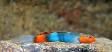 Тело удлиненное, вальковатое. Рот нижний. В спинном плавнике 10 мягких лучей, в анальном 1 колючий и 10 мягких. Самцы ярче окрашены и с более крупными спинными плавниками. Окраска: общий фон сероватый с голубым пятном в конце корпуса. Первый спинной плавник с голубой каймой, второй с белой и черным пятном в розовой окантовке. Вырастает до 3,9 см SL