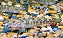 Тело удлиненное с плоской головой. Глаза посажены высоко. В первом спинном плавнике 5-7 колючих лучей, во втором 1-2 колючих и 11-13 мягких, в анальном 1 колючий и 8-10 мягких. Самцы немного крупнее самок и стройнее (с более длинным телом). Окраска: общий фон грязно-белый с тремя коричневыми полосами, которые доходят только до брюха. Плавники пестрые. Вырастает до 4,5 см TL