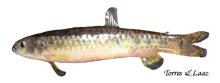 Тело длинное, округлое в сечение. Похожее на веретено. Голова и рот маленькие. Самцы мельче и стройнее самок. Окраска: спина серая или оливковая. Брюхо беловатое. Вдоль тела от кончика носа до конца хвостового плавника проходит темная полоса. Вырастает до 3,8 см. SL.