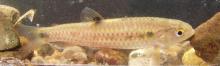 Тело удлиненное с небольшой головой и заостренным рылом. Самцы мельче и стройнее самок. Окраска: спина коричневая,на боку золотистая и бурая полосы. На хвостовом плавнике золотистый крап. Вырастает до 3,5 см SL