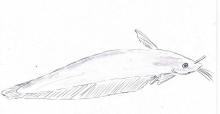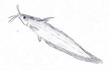 Тело стройное удлиненное с вытянутым и немного задранным вверх кончиком рыла. В спинном плавнике 1 колючий и 4-5 мягких лучей, в анальном 78-92 мягких. У самцов более вытянутая генитальная папилла. Окраска: общий фон варьируется от серого до светло-коричневого и даже желто-зеленого. Пятен на теле нет. Вырастает до 12 см TL.