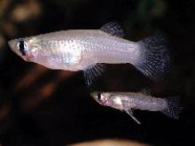 Тело удлиненное с небольшой головой. Самцы мельче самок и у них анальный плавник преобразован в совокупительный орган. Окраска: общий фон золотисто-голубой. Спинной плавник желтый. Вырастает до 5 см TL