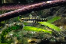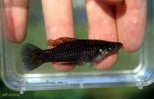Тело вытянутое в длину, стройное. Рот верхний. Самцы мельче самок и имеют очень длинный гоноподий (длиннее, чем у других представителей рода). Окраска: общий цвет оливково-серый. Брюхо желтоватое, наполовину просвечивается. Вырастает до 8 см (самцы до 5 см).