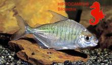 Тело дисковидное, сильно сжатое с боков. Рот верхний. Нижняя челюсть длиннее верхней и загибается наверх. У самцов закругленный конец анального плавника. Окраска: тело серебристо-серое. На жаберной крышке желтое пятно. Анальный плавник желтый. У основания хвостового плавника желтое пятно. Вырастает до 15 см SL.