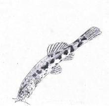 Тело удлиненное, вальковатое. Очень большой спинной плавник. Анальный и брюшные тоже не маленькие. Половые различия неизвестны. Окраска: тело светло-коричневое, брюхо грязно-белое. На спине и боках бурые пятна. Все тело и голова, включая лучи плавников в мелкий крап. Вырастает до 5,7 см SL.