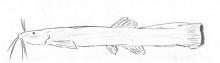 Тело удлиненное с плоской головой и вытянутым рылом. Глаза микроскопичекие в виде черных точек. Хорошо заметны хвостовые гребни (особенно верхний). В спинном плавнике 9 мягких лучей, в анальном 7. Половые различия неизвестны. Окраска: общий фон розовый, без пятен. На конце хвостового плавника у некоторых особей темная кайма. Вырастает до 6,4 см SL.