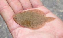 Тело плоское, овальной формы. Половые различия неизвестны. Окраска: общий фон песочный или светло-коричневый с мелким темным крапом и тонкими пунктирными полосами попрек спины. Вырастает до 10,6 см SL