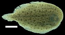 Тело плоское, овальной формы. В спинном плавнике 58-64 мягких лучей, в анальном 42-47. Половые различия неизвестны. Окраска: общий фон от серого до светло-коричневого с небольшими частыми пятнами (в области головы пятна меньше) и тонкими поперечными полосами. Вырастает до 7 см SL.
