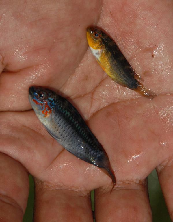 Встречается в заводях небольших рек с медленным течением. Держится около крупных кустов растений (возле корней) или среди органики (листья и ветки). Живут преимущественно парами или группой с одним самцом и несколькими самками. Питается мелкими водными организмами. Нерестится обычно в расщелинах коряг. Плодовитость до 150 икринок. Самка охраняет саму кладку, самцы территорию. Инкубационный период около 2 суток. Еще через 5-6 дней мальки начинают самостоятельно питаться. Через 1,5-2 месяца самка прогоняет подросших мальков, за которыми может еще некоторое время присматривать самец.