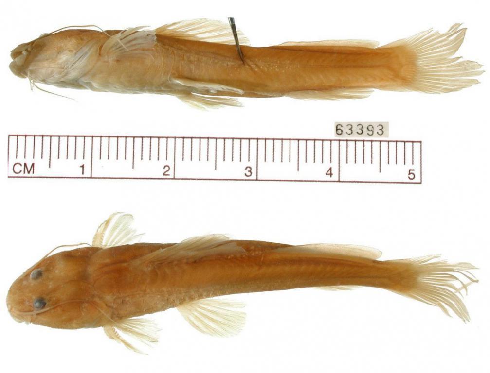 Тело удлиненное с небольшой немного плоской головой. Глаза посажены высоко. У самцов небольшой конусовидный половой сосочек. Окраска: общий фон светло-коричневый с темной полосой у основания хвостового плавника. Вырастает до 8,1 см SL