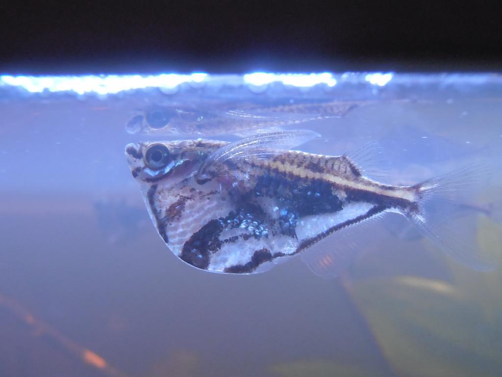 Тело короткое, с большим, выпуклым килем. Линия спины почти ровная. Грудные плавники вывернуты вверх. Рот верхний. Половые различия неизвестны. Окраска: тело полупрозрачное с коричневым мраморным рисунком. Имеется несколько морф из разных ареалов, у которых рисунок может сильно отличаться. Вырастают до 3,5 см (SL).