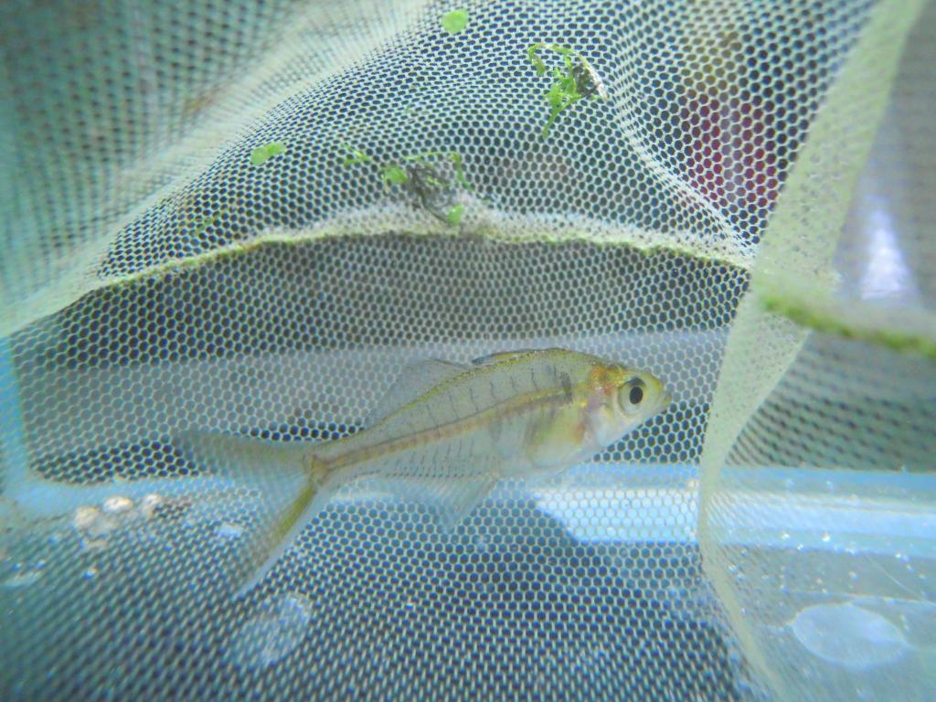 Тело немного вытянутое (отличительная черта рода) с длинным рылом. Имеет 2 спинных плавника (первый с жесткими лучами). Половые различия неизвестны. Окраска: тело прозрачное у молодых особей. Взрослые - с легким налетом желтизны. На верхнем конце 1-го спинного плавника черное пятно. Вырастает до 11 см.