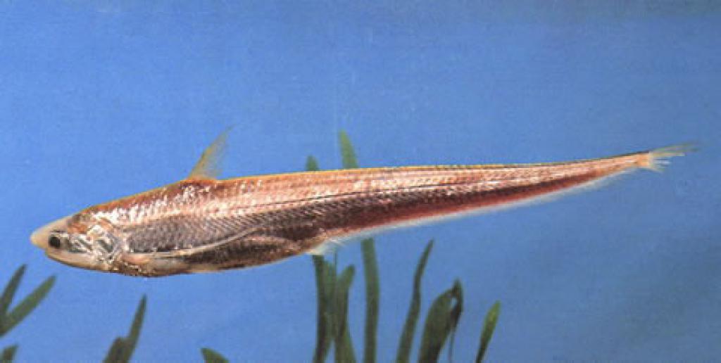 Тело удлиненное с вытянутым и тонким хвостовым стеблем. Голова небольшая. В анальном плавнике 80 мягких лучей. Самцы стройнее самок. Окраска: спина серая, бока серебристо-серые. Вырастает до 35,4 см SL