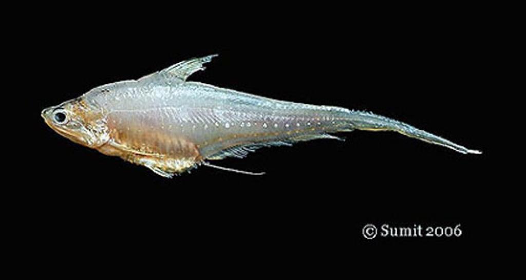 Тело удлиненное с тонким и длинным хвостовым стеблем. Киль заметно выступает. Голова небольшая с вытянутым рылом. В анальном плавнике 80 мягких лучей. Окраска: спина серая, бока серебристо-серые. Вдоль анального плавника ряд небольших золотистых пятен. Вырастает до 20 см SL
