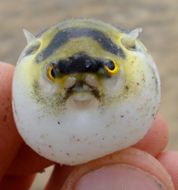 Тело немного вытянутое с большой головой. Половые различия неизвестны. Окраска: спина и бока зеленоватые (брюхо белое). На спине ряд поперечных, широких, черных полос. Вырастает до 12,8 см SL.
