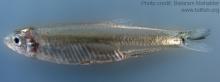 Тело удлиненное с крупной головой и большими глазами. В спинном плавнике 12-18 мягких лучей, в анальном 16-27. Самцы мельче и стройнее самок. Окраска: спина серая, бока серебристые. Хвостовой плавник с черной каймой. Вырастает до 5,3 см TL