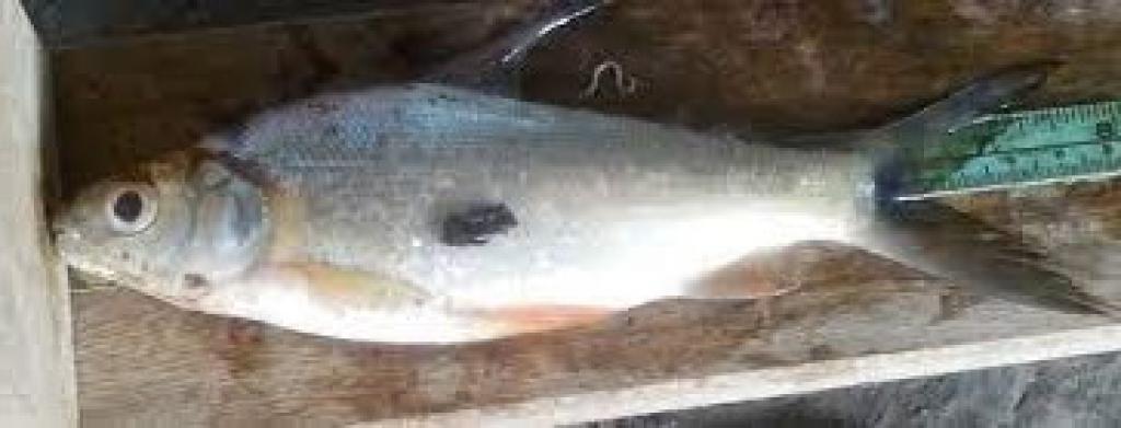 Тело удлиненное с высокой спиной и небольшой головой. У самцов удлиненные первые лучи на спинном плавнике и они стройнее самок. Окраска: общий фон серебристо-белый с темным пятном в центре корпуса. Плавники темно-серые. Вырастает до 22,5 см SL