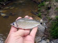 Тело удлиненное с высокой спиной. Самцы стройнее самок. Окраска: общий фон серебристый с темными продольными полосами. У основания хвостового плавника темное пятно. Плавники слегка красноватые. Вырастает до 9,6 см SL.