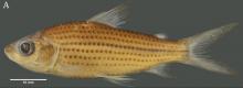 Тело удлиненное, довольно стройное с крупной головой. Самцы стройнее самок. Окраска: общий фон серебристо-серый с мелкими темными пятнами на чешуйках. Вырастает до 9,8 см SL