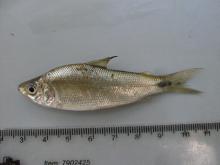 Тело короткое с высокой спиной и крупной головой. Самцы стройнее самок. Окраска: общий фон серебристо-серый. У основания хвостового плавника черное продолговатое пятно. Вырастает до 13,4 см SL