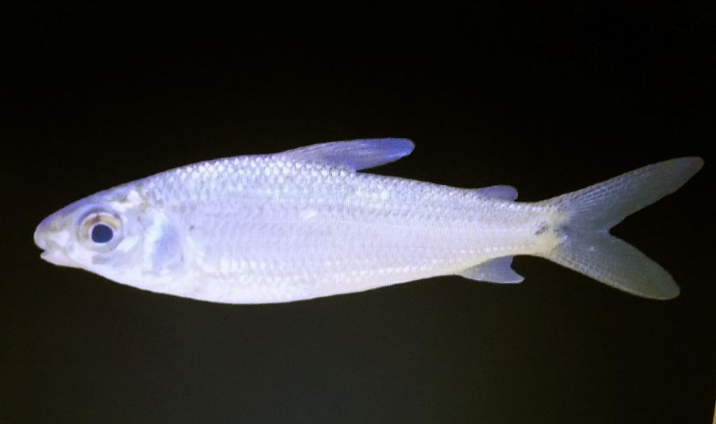 Тело удлиненное, стройное и сжатое с боков. Рот нижний. Самцы немного мельче и стройнее самок. Окраска: бока серебристые с золотистым отблеском и темной горизонтальной полосой. Вырастает до 9 см SL