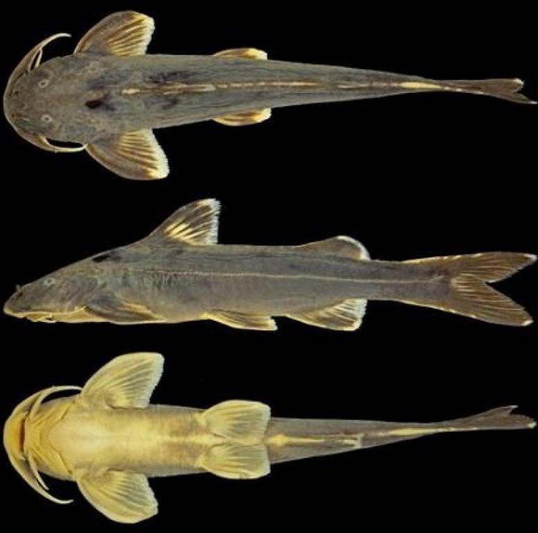 Тело удлиненное с плоской и не очень широкой головой. Жировой плавник короткий (примерно такой же, как и анальный). У самцов конусовидный половой сосочек. Окраска: общий фон темно-коричневый. За головой черное пятно. Хвостовой плавник темный. Остальные прозрачные с крупными темными пятнами. Вырастает до 7,6 см SL https://www.facebook.com/Ichthyology.of.the.world/?__tn__=%2CdkCH-R-R&ei...