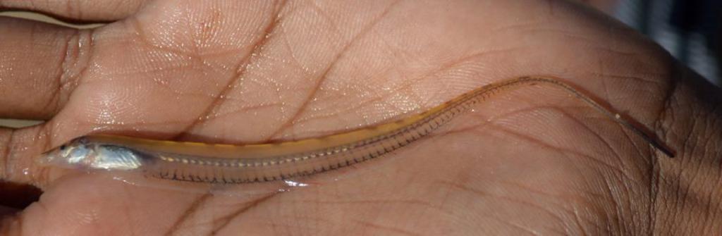 Тело удлиненное и сжатое с боков. Трубчатое рыло вытянутое и тонкое. Половые различия неизвестны. Окраска: тело полупрозрачное со светло-коричневым оттенком спины и розовым оттенком брюха. На спине ряд коротких полос. Некоторые из них заходят на бока. Рыло темное. Вырастает до 21,5 см.