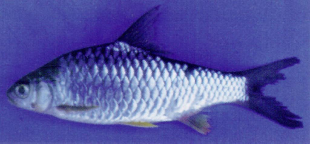Тело в меру удлиненное с высокой спиной и небольшой головой. Самцы мельче и стройнее самок. Окраска: общий фон серебристо-серый. Непарные плавники почти черные, парные - красные или оранжевые. Вырастает до 36,9 см TL