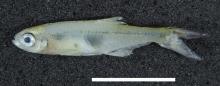 Тело удлиненное, стройное с небольшой головой. Половые различия неизвестны. Окраска: тело прозрачное с тонкой, темной горизонтальной полосой. Вырастает до 2,2 см SL