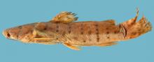 Тело удлиненное с вытянутой и плоской головой. Половые различия неизвестны. Окраска: общий фон светло-коричневый с вертикальными рядами мелких темных пятен. Плавники тоже в пятнах. Вырастает до 31,7 см SL