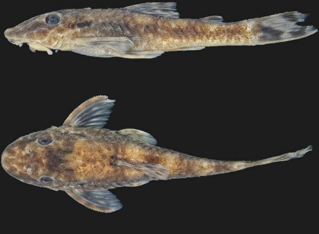 Тело удлиненное с крупной головой и вытянутым рылом. Самцы стройнее в области брюха. Окраска: общий фон грязно-белый с темными пятнами и разводами. Вырастает до 3,1 см SL