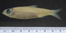 Тело удлиненное с крупной головой и большими глазами. В спинном плавнике 13-19 мягких лучей, в анальном 15-22. Самцы мельче и стройнее самок. Окраска: спина серая, бока серебристые. У основания хвостового плавника темное пятно. Вырастает до 12,1 см TL