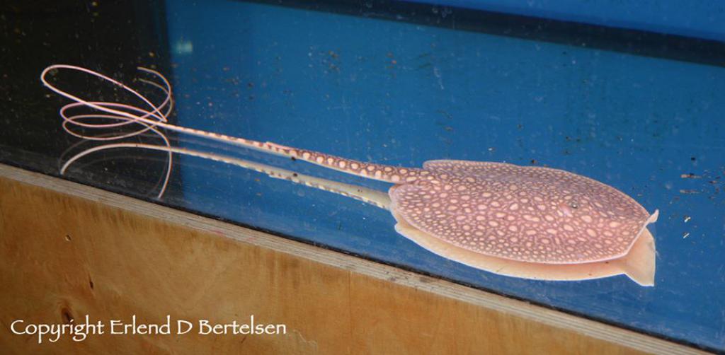 Диск округлой формы с треугольным выступом в передней части. Хвост очень длинный. Имеет 1 шип. У самцов имеется пара сосковидных половых придатков (заметны даже у несовершеннолетних). Окраска: общий фон бежевый с кольцевидными пятнами разного размера. Диаметр диска до 58 см