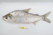 Тело не очень длинное, сжатое с боков и высокое в спине. Голова крупная. Чешуя очень мелкая. Самцы немного мельче и стройнее самок. Окраска: спина серая, бока серебристо-белые. Плавники серые. Вырастает до 25 см SL
