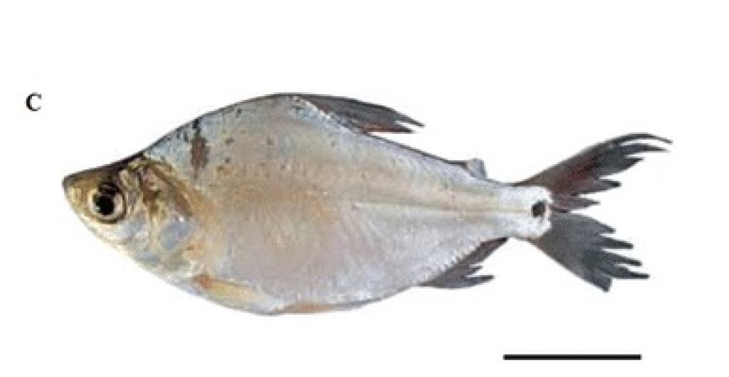 Тело короткое, лещевидное с высокой спиной и выдающимся килем. Голова маленькая с с задранным к верху рылом. У самцов удлиненные первые лучи на спинном плавнике. Окраска: общий фон серебристо-белый с темными плавниками. Вырастает до 21,9 см SL