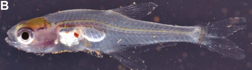 Тело удлиненное с крупной головой и большими глазами. Половые различия неизвестны. Окраска: тело прозрачное, включая плавники. На голове желтое пятно. Вырастает до 1,4 см SL