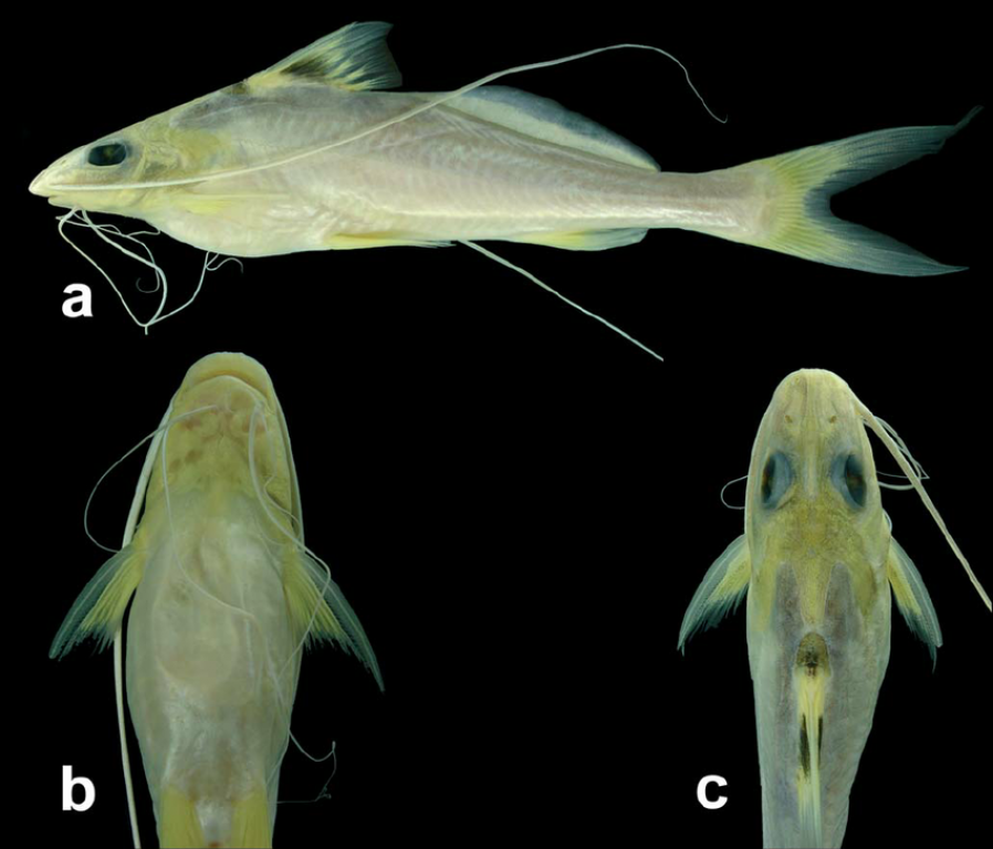 Тело удлиненное с небольшой и плоской головой. Жировой плавник длинный. Половые различия неизвестны. Окраска: спина серая, бока серебристо-белые. У основания спинного плавника и на самом плавнике по черному пятну. Вырастает до 13,7 см SL