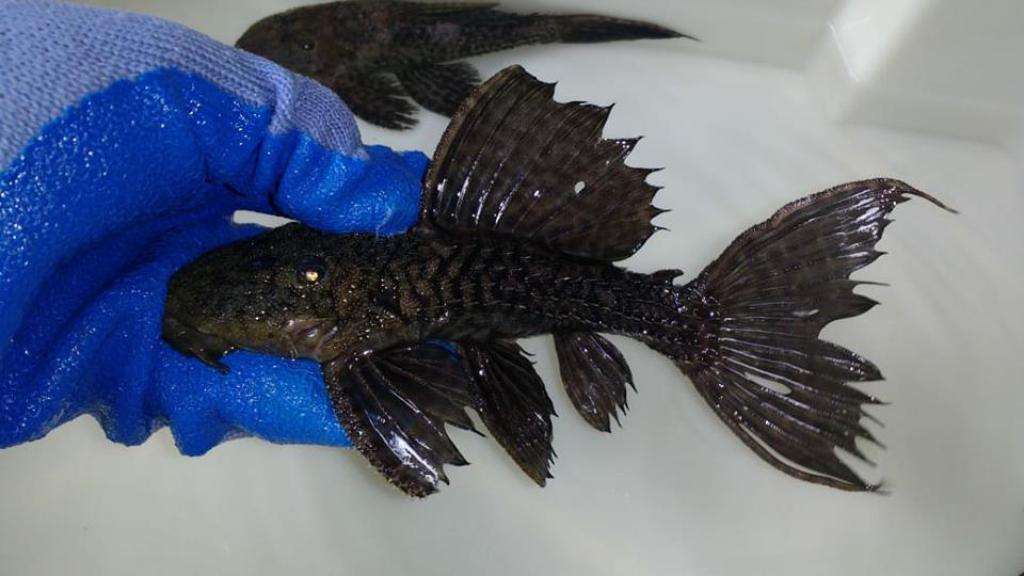 Тело удлиненное с крупной головой. Самцы имеют на щеках и на теле (особенно на хвостовом теле) длинную щетину. Окраска: общий фон темно серый, почти черный с черными пятнами округлой или другой формы. Вырастает до 60 см SL