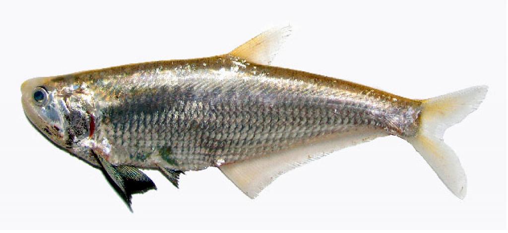 Тело относительно короткое с выдающимся килем и крупной головой. На первых лучах грудных плавников длинные отростки. В анальном плавнике 45-53 мягких лучей. Самцы немного мельче и стройнее самок. Окраска: спина серая, бока серебристо-серые. Спинной и хвостовой плавники слабо оранжевые. Грудные и брюшные темно-серые. Вырастает до 33 см SL