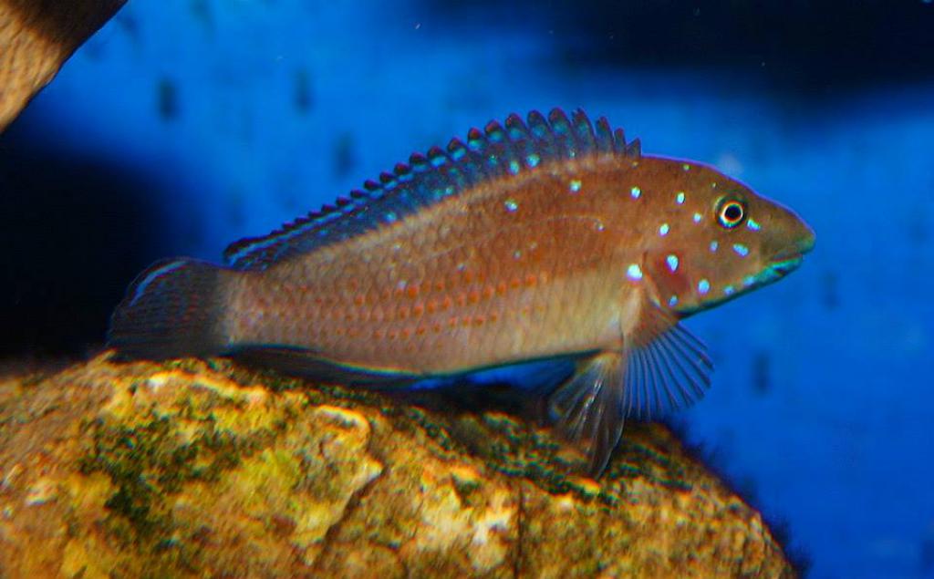 Встречается в прибойной каменистой зоне. Главное условие - наличие нитчатых водорослей на камнях. Камни, как правило, окатанной формы и разного размера. Взрослые держаться на глубине 30 см - 1 метр, молодь почти у самого берега (5-10 см глубины). Питается водорослями и микроорганизмами, которых в них находит. Нерест в укрытие. За потомством ухаживает оба родителя. Сразу после оплодотворения самка забирает икринки в рот (30-40 штук) и носит их около 10 дней, затем передает самцу.