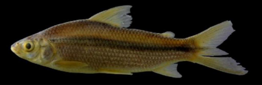 Тело удлиненное с высокой спиной и острым рылом. Самцы стройнее и мельче самок. Окраска: бока серебристо-серые с темной горизонтальной полосой. Плавники желтоватые. Вырастает до 16,1 см TL