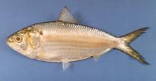 Тело короткое с высоко спиной и выдающимся килем. Голова крупная. Самки имеют более короткое и высокое тело. Окраска: спина серая, бока серебристые. За жаберной крышкой маленькое темное пятно. Хвостовой плавник в черной окантовке. Вырастает до 60 см TL