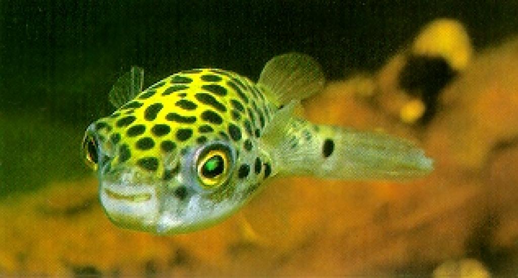 Тело короткое, шарообразное. Половые различия трудно различимы. Окраска: тело зеленоватое с белым брюхом. На спине и боках множество черных пятен. Данный вид часто путают с T.fluviatilis, у которого на спине широкие темные поперечные полосы. Вырастает до 17 см.