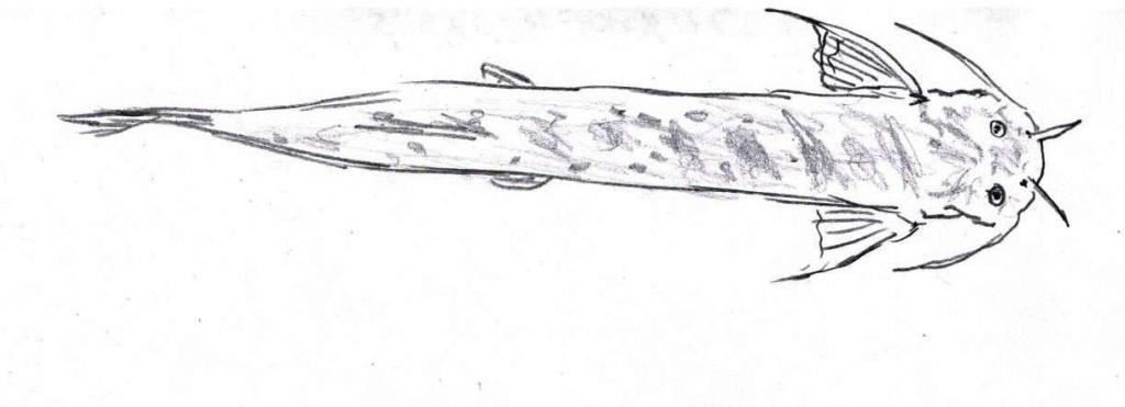 Тело удлиненное и сжатое с боков с плоской головой. Контур головы (если смотреть сверху) квадратный. В спинном плавнике 9 мягких лучей. Половые различия неизвестны. Окраска: общий фон сероватый с темными небольшими пятнами на спине и боках. Вырастает до 14,4 см SL.