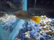 Тело короткое, высокое в спине. Голова маленькая с вытянутым рылом. Хвостовой стебель широкий. Самцы немного мельче, ярче окрашены и у них первый луч анального плавника видоизменен в половой орган. Окраска: в природе бывает несколько типов окраски (в зависимости от ареала) - спина сероватая, бока от голубого до мраморного. Основание хвостового плавника (включая плавник) от оранжевого до красного. Вырастают до 7 см (самки).